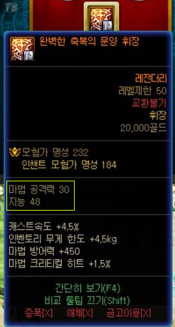 던파는 휘장이라는 시스템을 사용하여 공격력을 높일 수 있습니다. 하지만 휘장을 얻기 위해서는 길드 가입이 전제 조건입니다. 길드 가입을 한 후에, 길드 주화로 휘장을 구매할 수 있습니다. 다양한 종류의 휘장이 있습니다. 직업에 적합한 휘장을 선택해야 합니다. 위는 저의 던파 남넨마스터 염황 '내 정보(M)'창입니다. 내 정보창을 보면 '지능, 마법공격, 마법 크리티컬'에 밝게 켜져 있는 것을 보실 수 있습니다. 즉, 던파 남넨마스터는 마법공격을 하며, 지능이 높을수록 공격력이 높아집니다. 따라서 지능 48과 마법 공격력 30을 증가시키는 '완벽한 축복의 문양 휘장'을 선택하면 됩니다. 그리고 휘장은 무기처럼 강화하여 공격력을 높일 수 있습니다. 이 경우에도 길드 주화를 사용하여 휘장을 강화할 수 있습니다.