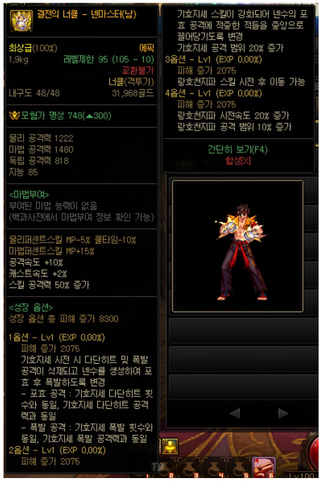2. 던파 넨마스터(남) 염황 105제 에픽 장비