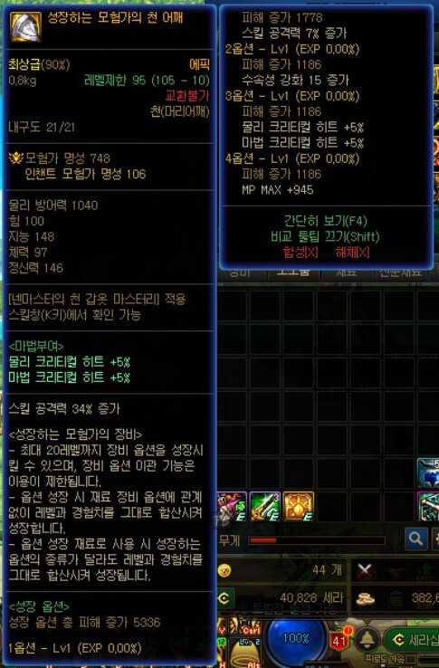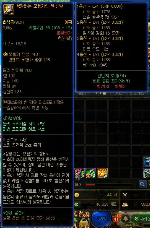 저의 던파 넨마스터(남) 105제 아이템 장비 모습입니다. 이번 이벤트로 남넨마스터를 처음 접했습니다. 그래서 이벤트에서 얻은 105제 아이템을 사용하고 있습니다. 옵션 레벨을 보면 모두 레벨이 1입니다. 이럴 경우 105제 아이템의 모험가 명성이 748임을 알 수 있습니다. 하지만 신화 아이템의 모험가 명성이 2000 정도임을 알 수 있습니다. 이번 신규 던전은 모두 모험가 명성 커트라인이 있습니다. 100제 아이템만으로는 높은 난이도나 상급 던전까지 갈 수 있는 모험가 명성을 충족할 수 없을 것입니다. 그래서 105제 아이템으로 변경해야 합니다. 하지만 105제 에픽 아이템 성장 레벨이 낮을 경우 모험가 명성 커트라인을 충족할 수 없습니다. 그래서 처음에는 꼭 신화가 있다면 착용하는 것을 추천합니다. 나중에 필요한 아이템을 획득하고 성장 시스템을 통해, 아이템이 많이 성장하면 신화 아이템 대신 105제 아이템을 사용하면 될 거 같습니다. 지금까지 던파 남넨마스터(남) 105제 에픽 장비 아이템에 대해 살펴보았습니다. 읽어봐 주셔서, 감사합니다.