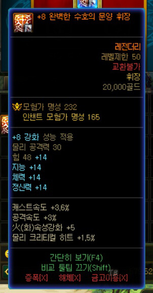 던파에는 휘장이라는 시스템이 있습니다. 휘장은 전반적인 공격력을 높일 수 있는 시스템 중 하나입니다. 그러나 휘장은 아무나 얻을 수 없습니다. 즉, 휘장을 획득하기 위한 전제 조건이 있습니다. 바로 길드에 가입하는 것입니다. 길드 가입 후, 길드 활동을 통해, '길드 주화'를 획득할 수 있습니다. 이 '길드 주화'로 휘장을 살 수 있습니다. 그리고 휘장을 살 때, 아무거나 사지 말고 자신의 직업에 맞는 휘장을 사야 합니다. 위를 보시면 저의 던파 로그 '내 정보(M)'창 모습입니다. '힘, 물리 공격, 물리 크리티컬'에 밝게 켜진 것을 확인할 수 있습니다. 따라서 휘장도 '물리 공격력 30, 힘 48'을 증가시키는 '완벽한 수호의 문양 휘장'을 선택하면 됩니다. 직업별 휘장을 선택 방법에 대해 자세히 설명드렸습니다. 아래 사진을 클릭하시면 확인하실 수 있습니다.