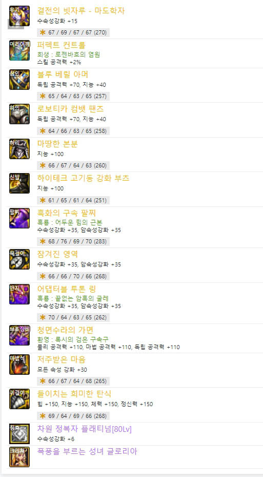 지난 시간에 던파 마도학자 스킬트리 및 탈리스만에 대해 알아보았습니다. 마지막으로 이번에는 마도학자 105제 세팅 에픽 장비를 살펴보겠습니다. 일반적으로 랭커들이 어떤 105제 아이템을 사용하고 있는지 알아보겠습니다.