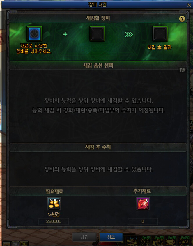 | 2. 동일한 부위의 장비에만 장비 능력을 계승할 수 있습니다. |