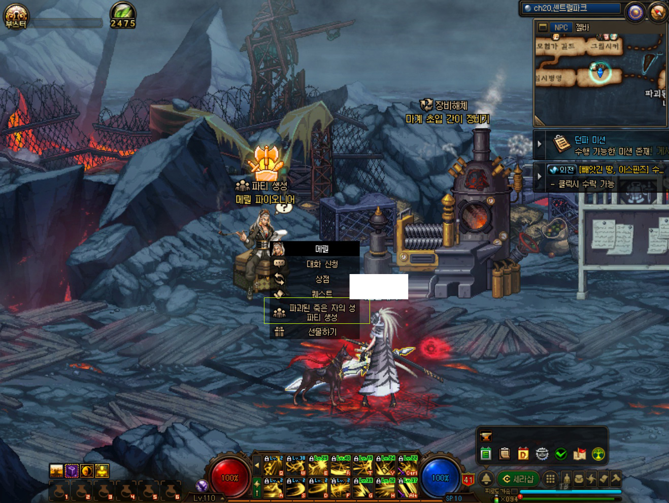 저도 처음에는 파죽성이 어디 있는지도 몰라서, 검색을 했던 기억이 납니다. 위와 같이 '천계-황혼의 바다(마계 초입)'에서 '메릴 파이오니어' 상인을 찾을 수 있습니다. 잘 모르겠다면 일반 던전인 '헤블론의 예언소', '왕의 요람'을 가기 전에 NPC가 있습니다. 저도 파죽성 가는 길을 헤블론의 예언소 가는 길로 기억하고 있습니다. 메릴 파이오니어 NPC를 클릭하면 '파괴된 죽은 자의 성 파티 생성'이 있습니다. 난이도 선택 후, 파티를 생성할 수 있습니다. 그리고 메릴 파이오니어 NPC를 다시 클릭하면 탐험 시작이 있습니다. 던전은 1인 입장이 가능하기 때문에, 혼자서도 할 수 있습니다.