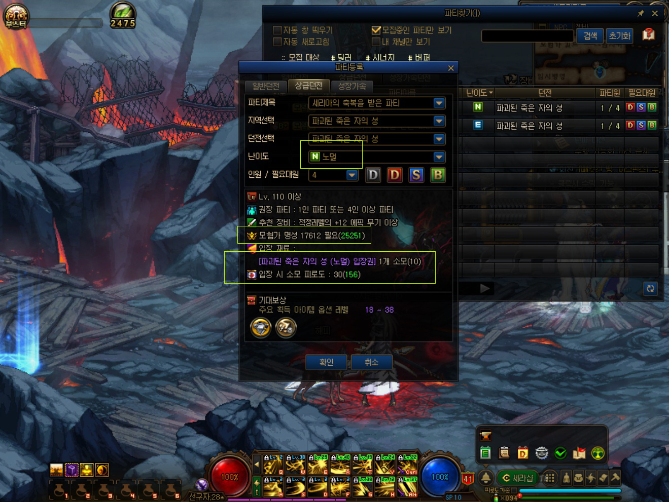 파죽성은 난이도에 따라 모험가 명성 커트라인이 있습니다. 일단 노멀이라도 입장하려면 모험가 명성이 17612 이상이어야 합니다. 그리고 난이도가 높을수록 기대 보상 아이템 성장 레벨이 높아집니다. 따라서 모험가 명성 커트라인을 최대한 난이도별로 맞춘 후에, 더 높은 난이도로 입장하여, 더 높은 성장 옵션 레벨의 아이템을 획득하는 것이 유리합니다. 저도 아직 마스터에 가본 적이 없습니다. 그리고 직접 NPC에게 직접 찾아가 확인하는 방법도 있지만 다른 방법도 있습니다.