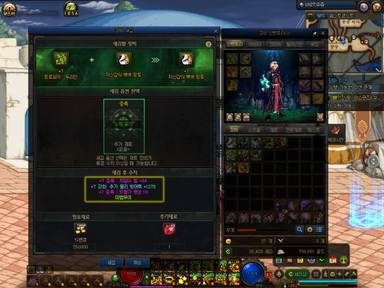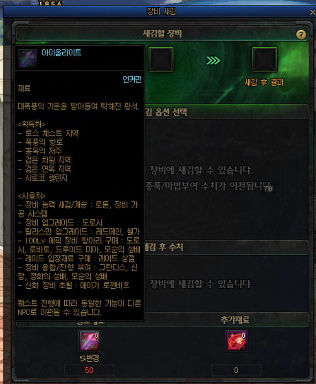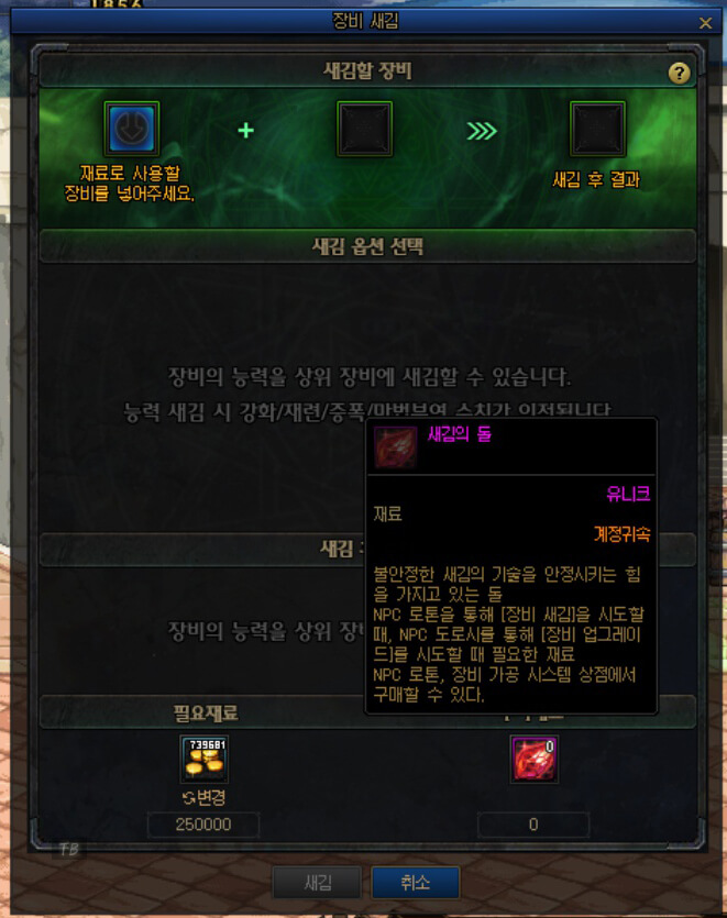 던파 105제 새김 필요한 재료는 '새김의 돌과 25만 골드'나 '새김의 돌과 아이올라이트 50개'입니다. 보통 아이올라이트 50개가 25만 골드보다 비싸므로 25만 골드로 선택을 합니다.