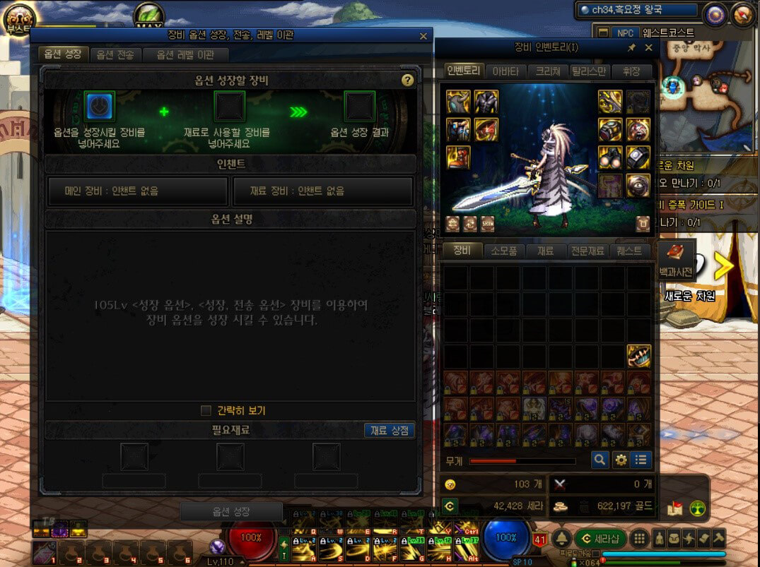 던파 105제 성장 시스템은 '벨마이어 남부' 내 '웨스트 코스트 항구'의 '로톤 막시머그 NPC'에서 찾을 수 있습니다. '로톤 막시머그 NPC'를 클릭하면 하단에 '옵션 성장, 전송 레벨 이관'이 있습니다.
