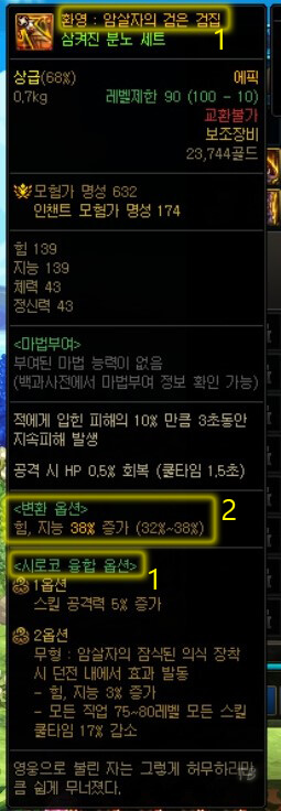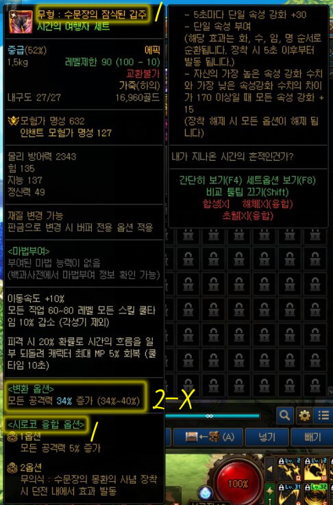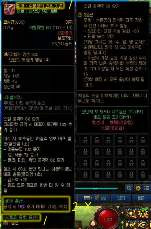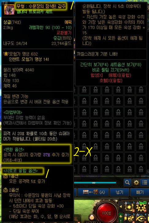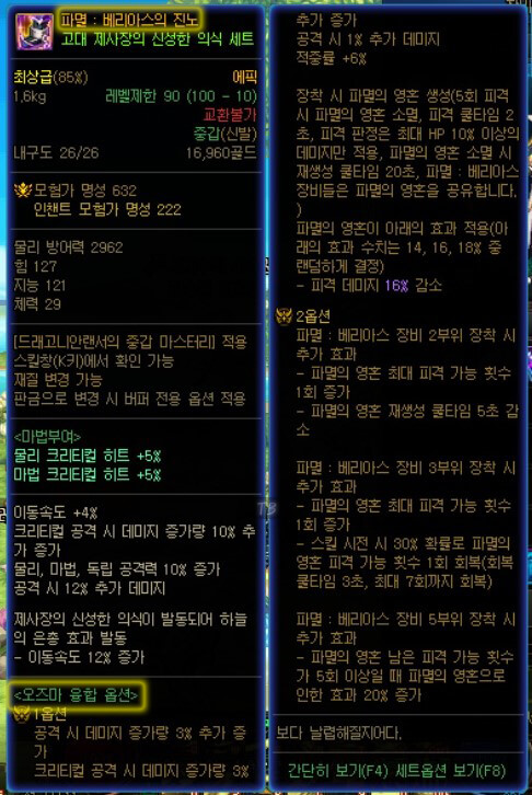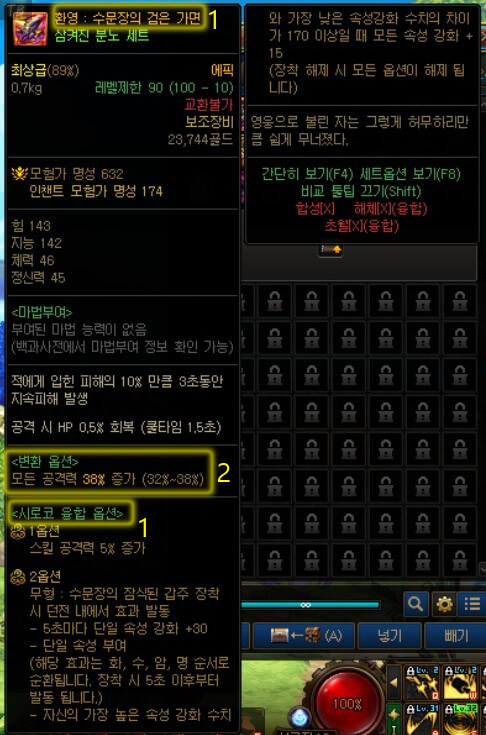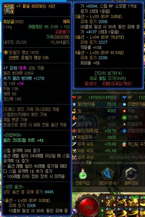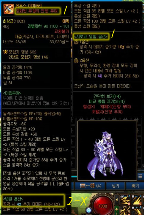 | 오즈마 융합이 적용된 100Lv 에픽 장비 |