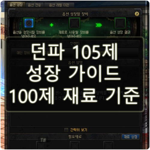 3. 던파 105제 성장 가이드 100제 재료 기준 예시
