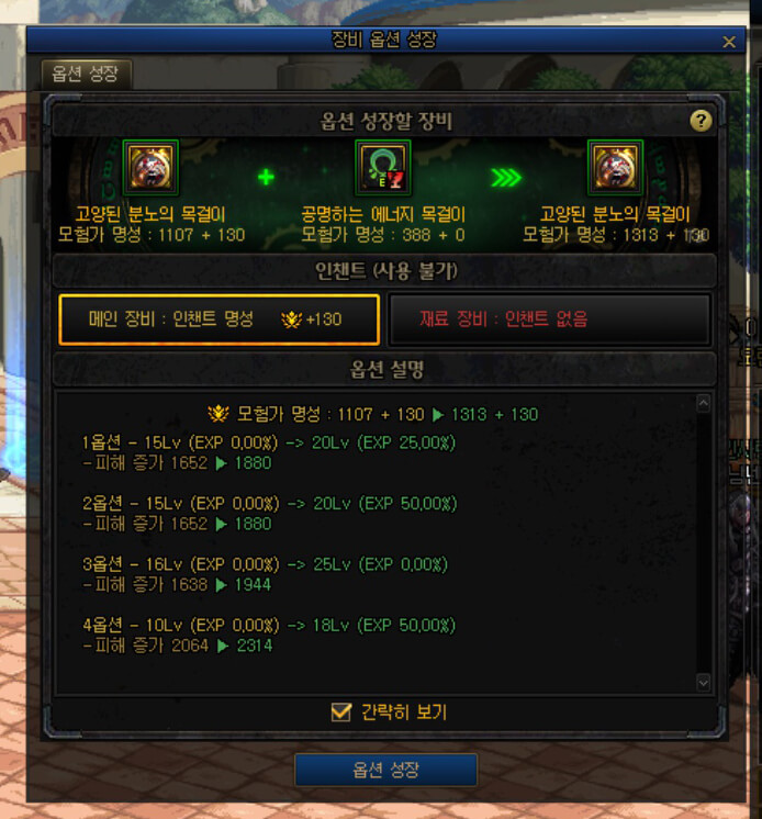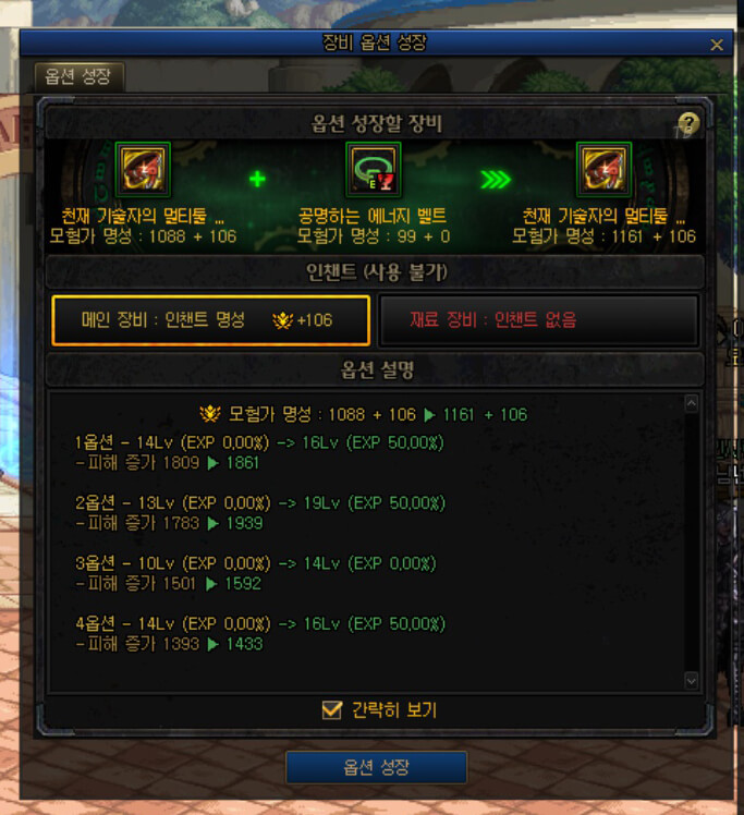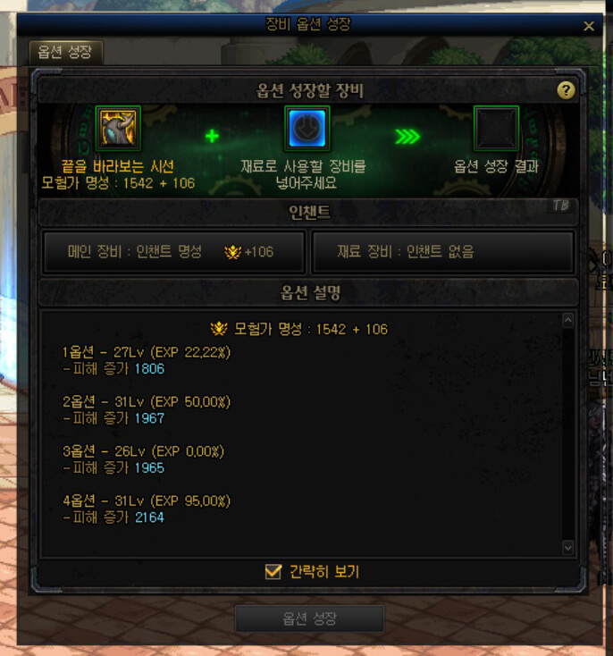 | 2. 각 아이템에는 4개의 개별 옵션 레벨이 있습니다. 즉, 각 옵션의 레벨을 올릴 수 있습니다.(성장) |