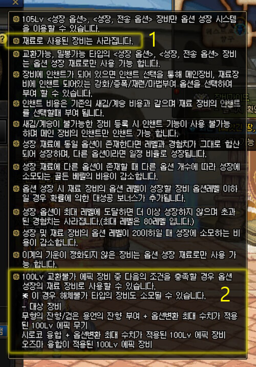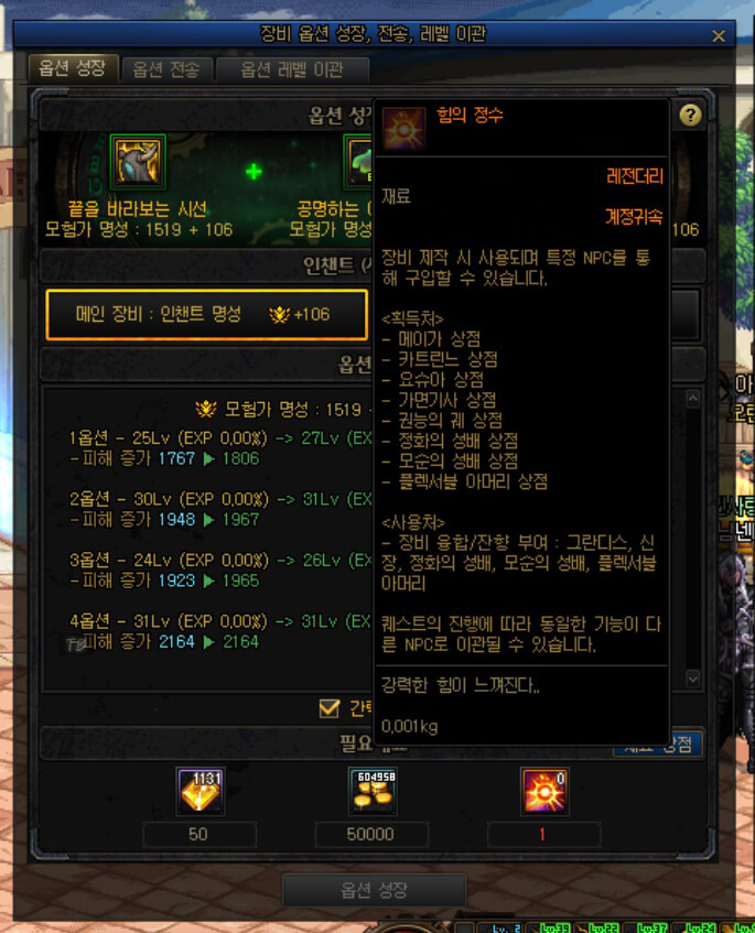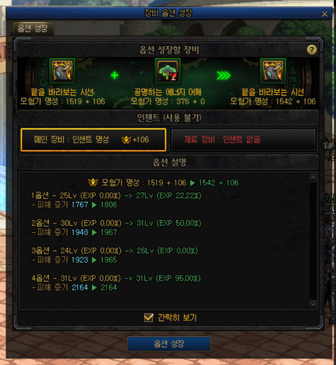 | 2. 각 아이템에는 4개의 개별 옵션 레벨이 있습니다. 즉, 각 옵션의 레벨을 올릴 수 있습니다.(성장) |