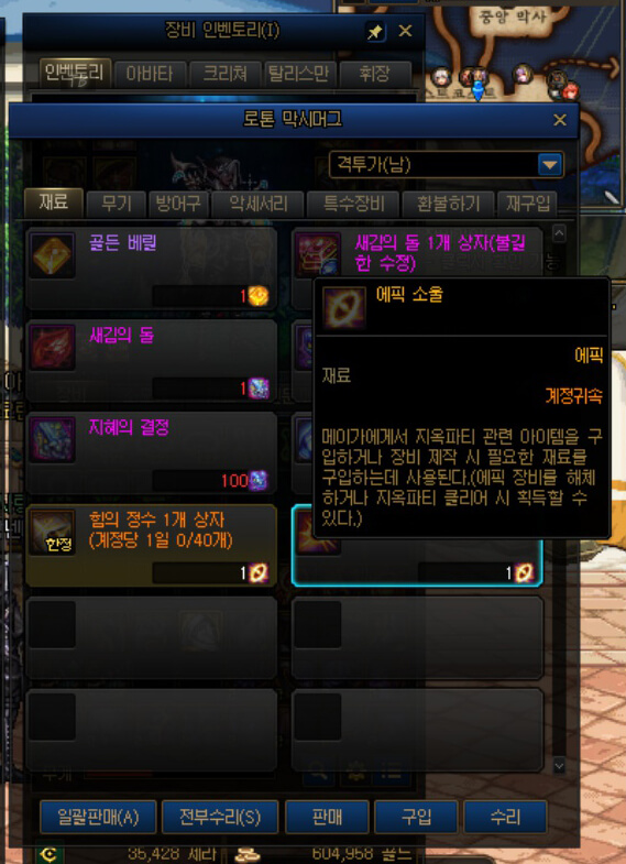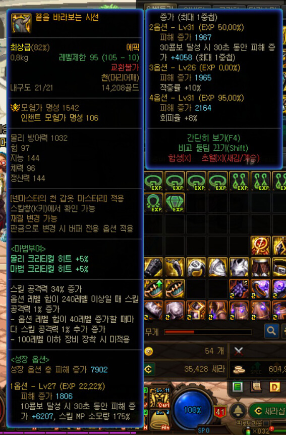 | 1. 100제 에픽 아이템 + 시로코 융합 + 연옥변환 최대치 |